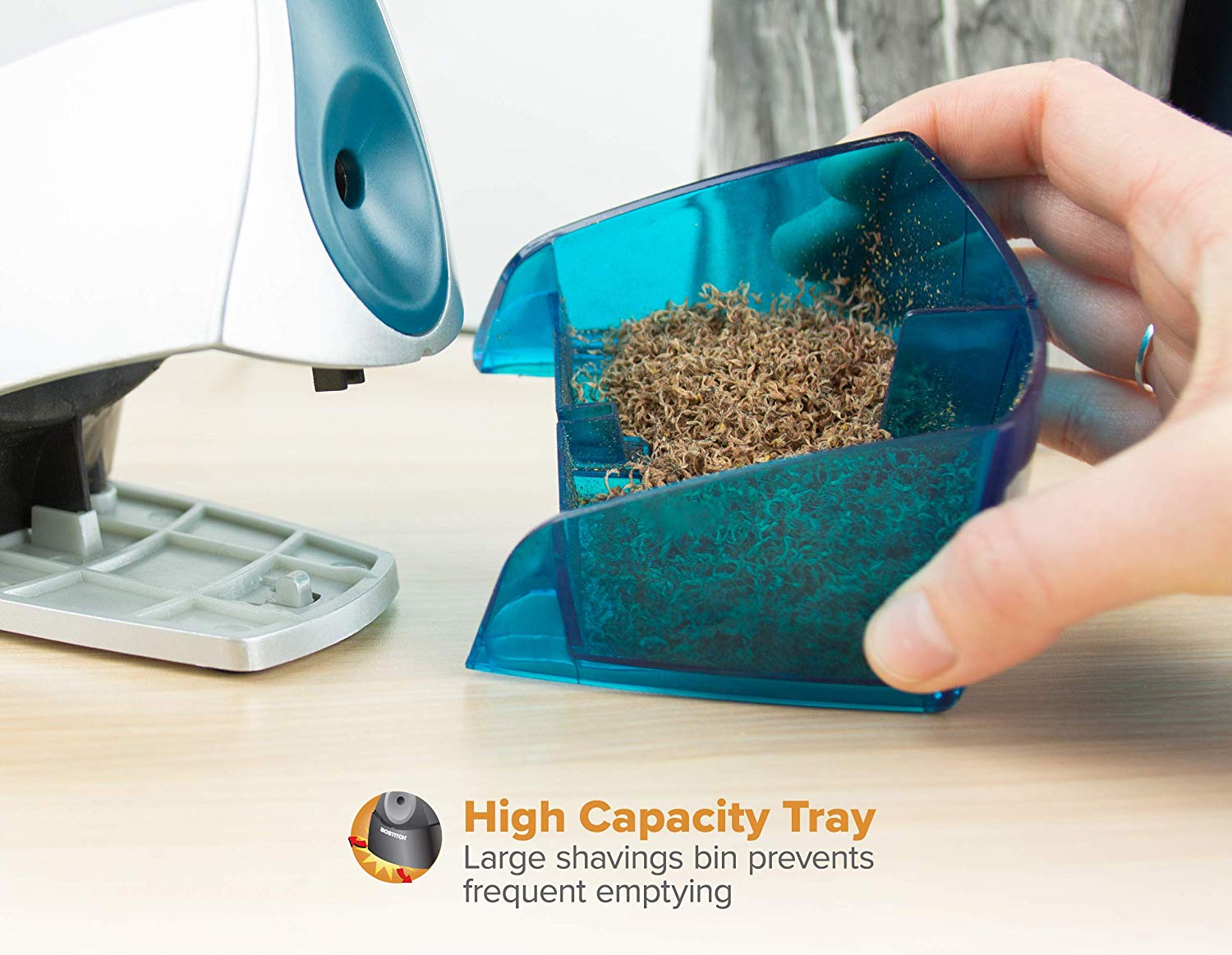 - Safety switch prevents operation when shavings tray is removed